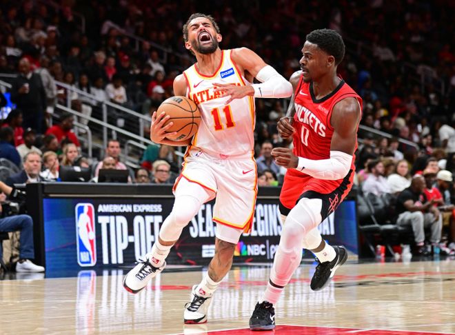 次節(jié)比賽,戴維森三分命中,老鷹連追5分,戴維森再中一記三分,老鷹再得5分追平。火箭連得4分,老鷹連得5分反超,謝潑德一人連得7分,特雷-楊內(nèi)外開花咬住比分?;鸺B得5分,老鷹一波10-3攻勢(shì)反超1分,火箭連得4分,老鷹也連得4分,火箭單節(jié)29-34輸?shù)?分,上半場(chǎng)結(jié)束火箭60-61被老鷹反超1分。前兩節(jié)比賽,雙方均是3人得分上雙,火箭謝潑德18分4籃板3助攻4搶斷、奧科吉13分3蓋帽與戴維森11分3搶斷,老鷹里薩謝13分5籃板、波爾津吉斯14分7籃板與沃克10分,特雷-楊8分5助攻。