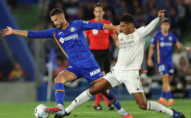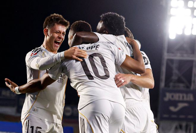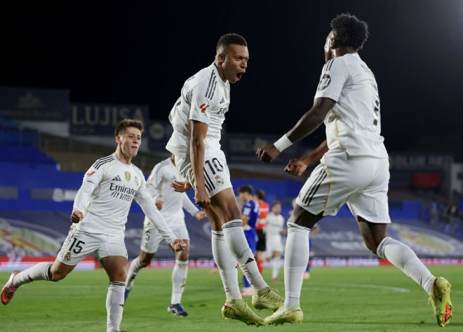 下半場易邊再戰(zhàn),皇馬用阿森西奧換下阿拉巴。第65分鐘,姆巴佩在禁區(qū)右側(cè)射門偏出。隨后,皇馬獲得禁區(qū)外任意球機會。姆巴佩主罰,直接射門,稍稍偏了一點。第77分鐘,恩約姆放倒維尼修斯,被紅牌罰下!第80分鐘,姆巴佩終于抓住了機會,他接到居萊爾的直塞球,轉(zhuǎn)身射門打進,完成絕殺!隨后圣克里斯犯規(guī),兩黃變一紅被罰下。9人應(yīng)戰(zhàn)的赫塔費無力回天。最終皇馬1-0險勝赫塔費,繼續(xù)高歌猛進。