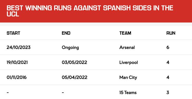 而他們完全有可能繼續(xù)擴(kuò)大這一戰(zhàn)果。在阿森納之前,利物浦和曼城曾先后做到連續(xù)4次擊敗西甲球隊(duì)。另有15支球隊(duì)對(duì)西甲球隊(duì)保持3連勝的記錄。
