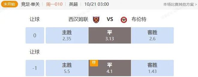 競足 周一010 英超 西漢姆聯(lián)VS布倫特
