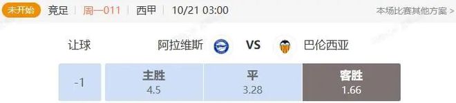 競足 周一011 西甲 阿拉維斯VS巴倫西亞
